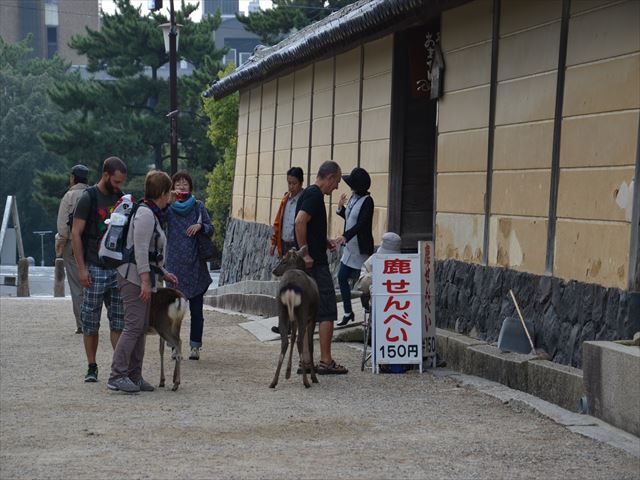 ここにいる鹿たちは夜になると山のねぐらに帰って行くそうです。餌は与えていないそうなので鹿せんべいは貴重な食料かもしれません。