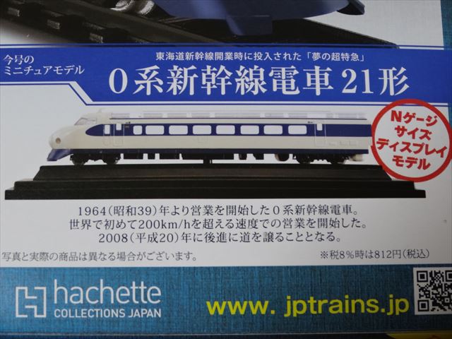 国産鉄道コレクションです。創刊号は0系新幹線電車21型です。これは1964年(昭和39年)新幹線開業当時に投入された車輛です。考えてみれば開業から今年で50年ですね。