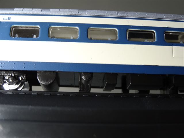 連結部付近もしっかり出来ています。なかなか見ることの出来ない場所ですね。連結器の下にあるのは水タンクか汚水タンクでしょうか。奇数号車の後よりにはトイレがありますからね。