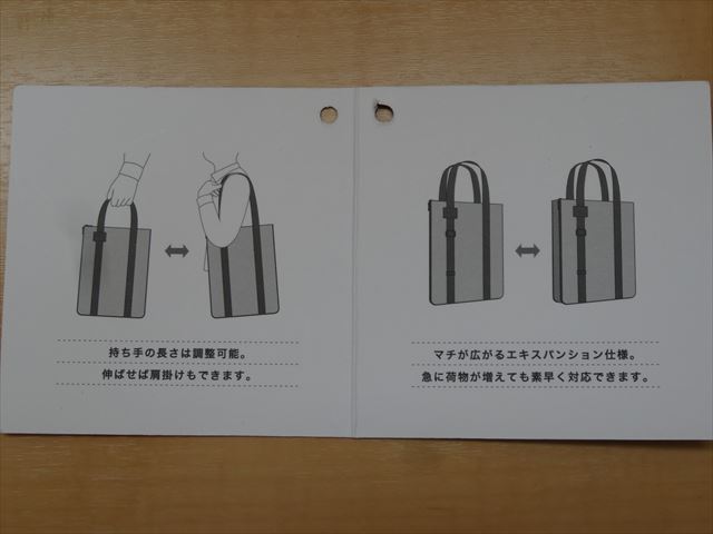 B4もは入る大きさ。持ち手は長さ調節が出来るので手持ちタイプや肩掛けタイプに変身可能です。