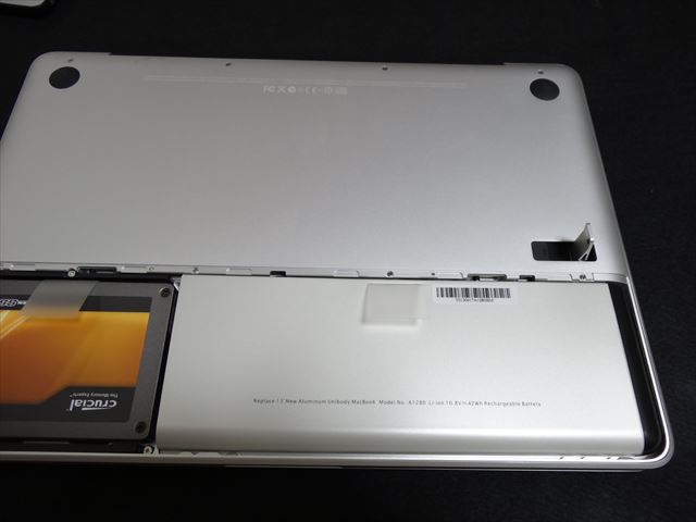 ネットで調べたところリチウムポリマーバッテリーは経年変化として膨張するが爆発等の危険はないようです。しかし裏蓋に無理な力が掛かっているし、もっと膨張するとトラックパッドにも影響がでるのでバッテリーを交換することにしました。