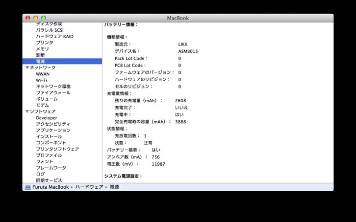 私のMac Bookはアルミニウムユニボディの13インチモデルでLate 2008と呼ばれているものです。型番はMB466J/Aになります。