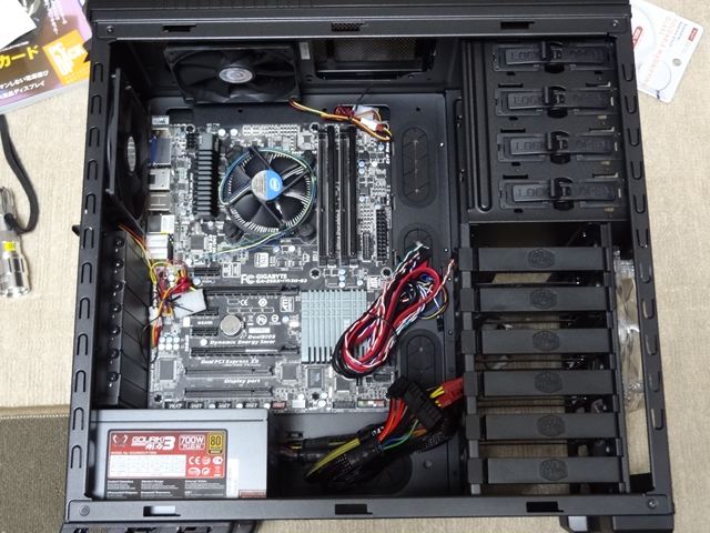 まずはここまで。 つぎはHDD、DVDドライブの取り付け、各種ケーブルの接続になります。