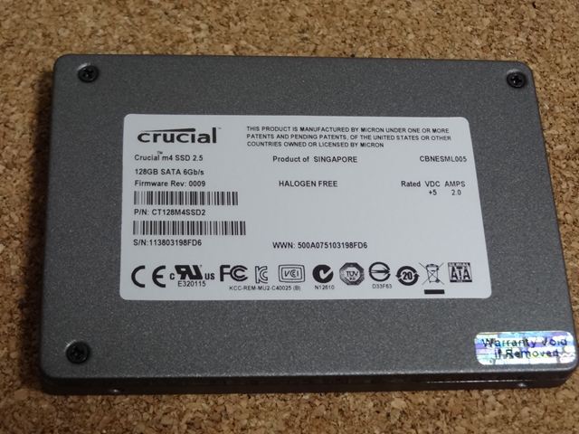 購入したのは現在読み書きのスピードで最速の部類に入るCRUCIALのM4SSDで型番はCT128M4SSD2という128GBモデルのSSD(Solid State Drive)です。