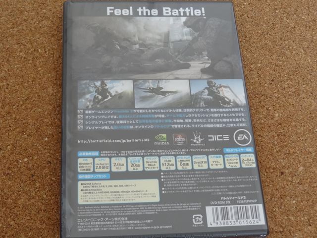 ”BattleFileld3”が本日届きました。発売日前に予約しておいたものです。BattleFileld3のプラットフォームはPC/PS3/Xbox360になりますが、購入したのはもちろんPC用です。