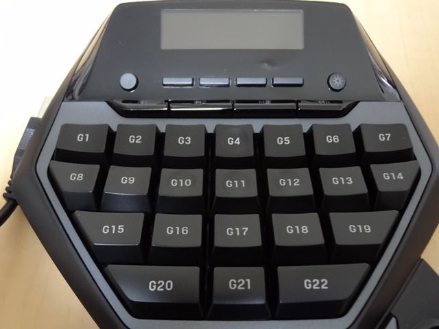 キーボードはG1~G22まであり、それぞれキーストローク、マルチキー、ショートカット等専用のプログラムを使って割り当てることが出来ます。上部の液晶表示部にはゲームステータスやシステム情報、時計などを表示することが出来ます。