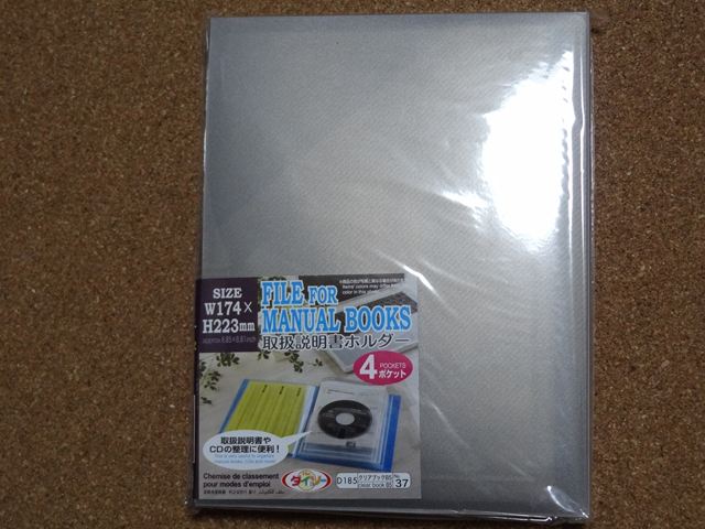 でもサイズがA4版なんです。テレビ等一般の家電の場合はA4版なんでしょうが、PCの付属品の取説はもっと小さくA5版程度なんです。そこで100均(ダイソー)に行ってみたらいいのがありました。