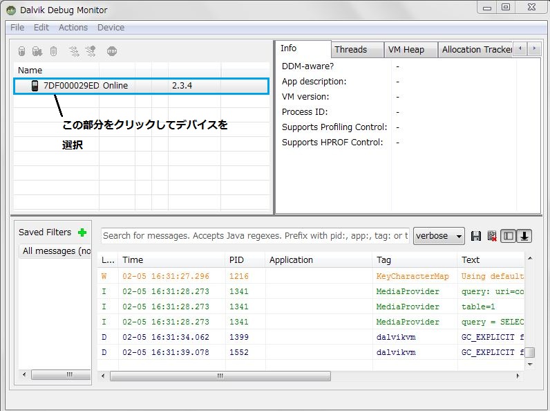 もう一つはすべての手順が完了して実際にスクリーンショットを撮る際にあとは、表示されているデバイスを選択しDevice → Screencapture でスクリーンショットが撮影できます。となっているんですがデバイスを選択を忘れており「screencapture」が押せないんです。記述をよく読めばなんでも無いことでしたが、一瞬失敗かと青ざめました。