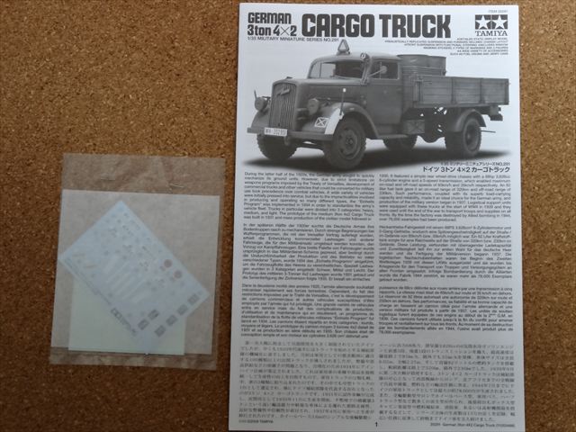 イタレリに続いてタミヤ 1/35 GERMAN 3ton 4X2 CARGO TRUCKを購入しました。購入の目的は先に紹介したイタレリの製品のタイヤが使い物にならないのでタミヤのCARGO TRUCKから流用するするためです。