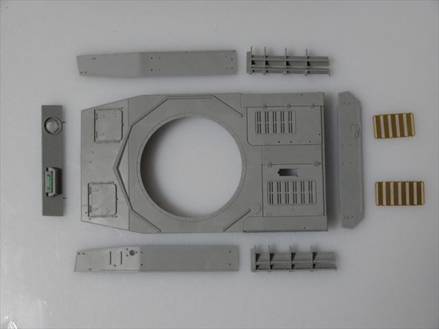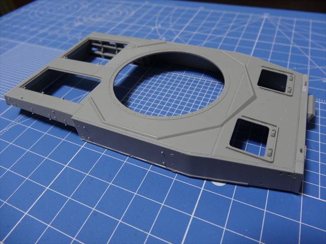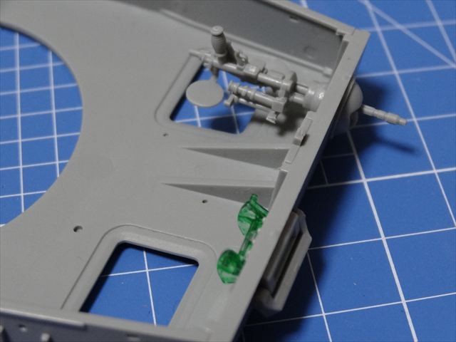 前面装甲の裏にビジョンブロックと前方機銃を取り付けます。