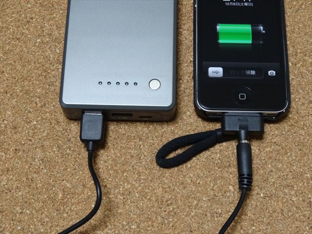 iPhone4Sを充電します。 1A出力の方に接続します。