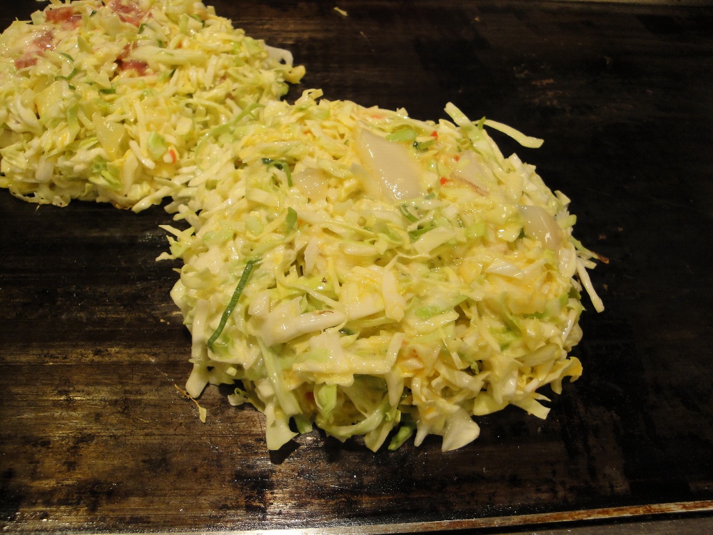 お粉はホントに少ないです。キャベツの表面にうっすらと付いているといった感じです。盛り方も