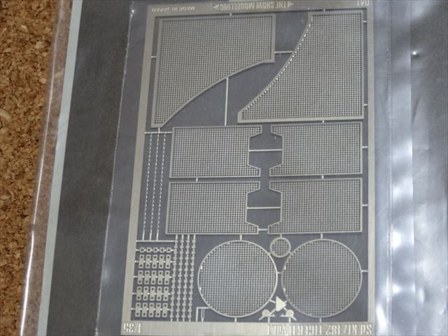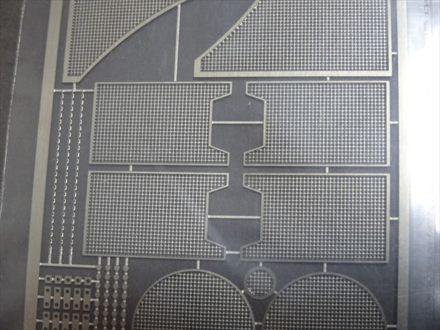 エンジングリルに使用するエッチングパーツです。これは10年以上前に購入していたもので、当初はこれをつかおうかと思っていました。(ショーモデリング製)