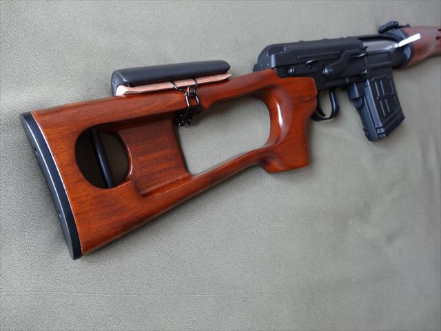 スットクの質感や色、ツヤ共に良好です。やっぱりドラグノフは木製ストックが似合いますね。