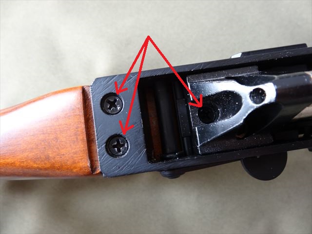 ストックはこの3本のスクリューで固定します。
