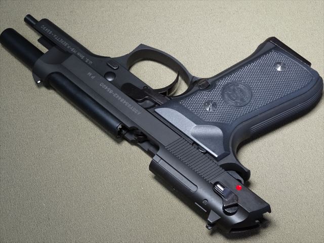 KSCのHK45を触ってみてKSCの本物感とHW素材による重量感にやられてしまい、ベレッタM9を買ってしまいました。この後にM92バーテックが発売されましたが、私的にはこちらが好みなのであえてM9を選びました。
