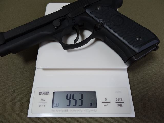 手にするとずっしりと重みを感じますが、それもそのはずでマガジン込みで953gあります。