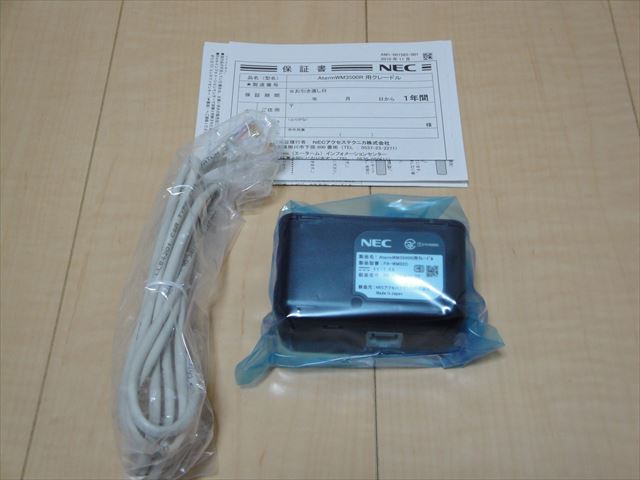 16日の日曜日に電話で申し込んだ@nifty WiMAXですが本日@niftyの入会案内と無線モバイルWiMAXルーターAterm WM3500Rが届きました。当初は2月1日に設定登録するつもりでしたが目の前においしいものがあるのに手を出さない訳には行きません。どうせ1月分は料金とられませんから。