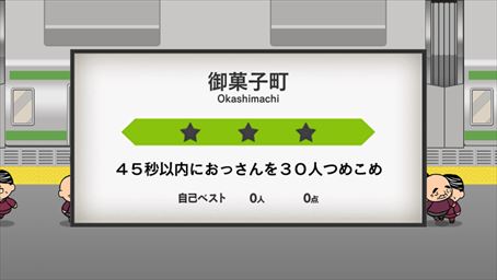 指定された時間内に指定された人数のおっさんを電車に詰め込みます。ゲームの操作は簡単です。
