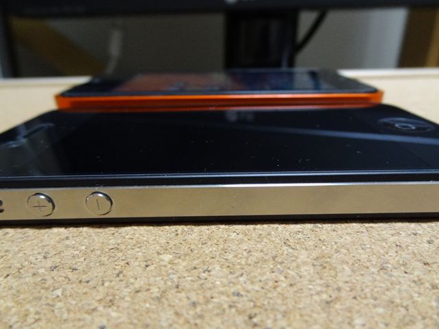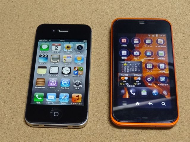IS03と比べると長さ、厚みともにiPhoneの方が小さいです。