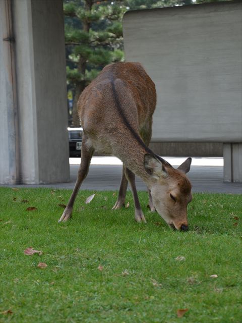 まずは県庁に向かいます。そこで見たのは県庁の中庭に鹿がいるではないですか。今回の奈良観光の目玉の一つが鹿と戯れることなので、いきなりテンションが上がってきました。