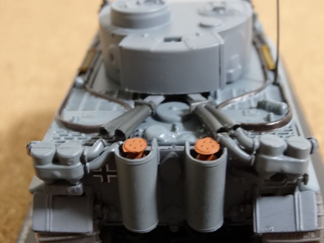 エンジンの排気管が2本付いています。ちゃんと焼けて錆びた色に塗装されています。