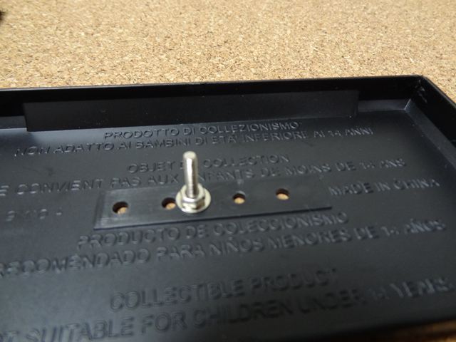 左のネジが台を100均の台に結合するためのもので右のネジがモデルカーを固定しているネジです。