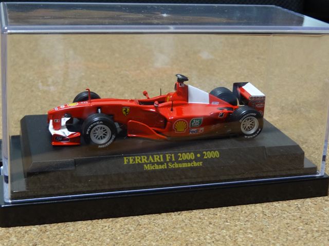 エントリーで紹介しました公式フェラーリF1コレクション<1>のフェラーリF1-2000を飾れるようにプラケースに入れました。購入したモデルカーはブリスターパックに入っています。