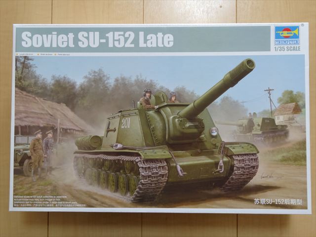 WWWⅡドイツ軍に襲いかかる宿敵ソビエトの重自走砲 SU-152を購入しました。トランペッターという中国のメーカーの製品です。強力な152mm榴弾砲を搭載しており、その圧倒的な破壊力からズヴェロボイ(猛獣殺し)と呼ばれていたそうです。猛獣というのはドイツ軍のタイガー戦車をさしているんでしょうね。