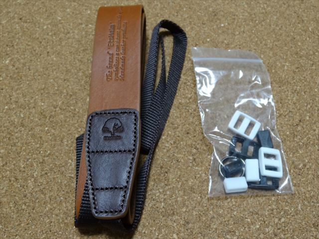 写真左側にある本体に収納袋とストラップが付属しています。