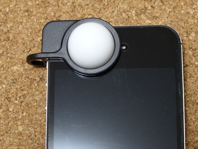 構造は簡単なものでiPhoneのインカメラの前に半円球の白いドーム状のものを取り付けるというもの。