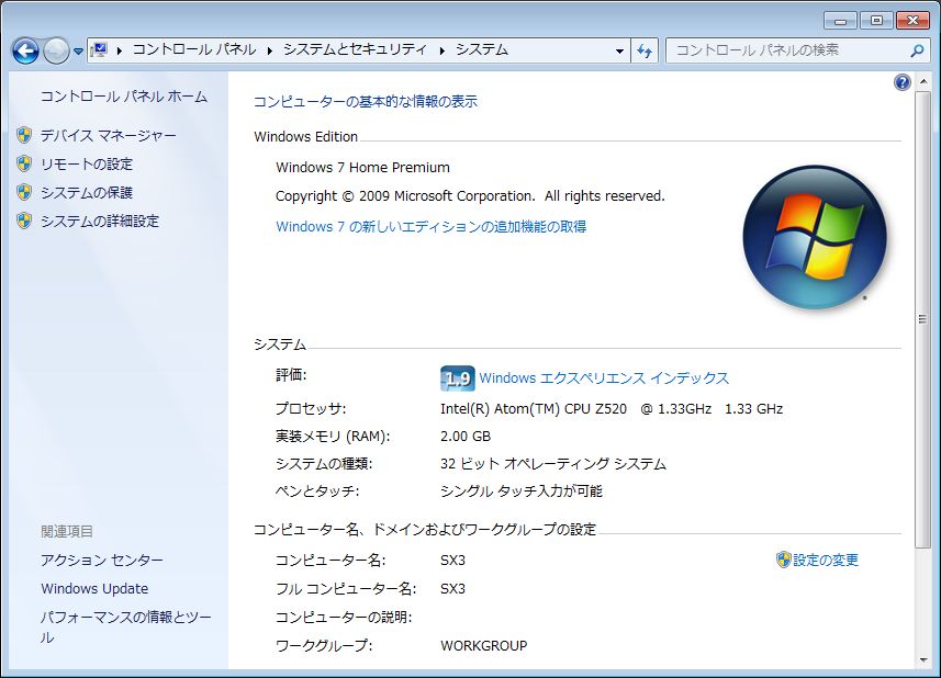 OS : Windows VISTA (Windows 7 Home premiumに換装)