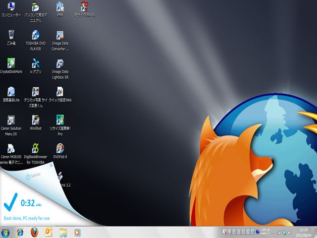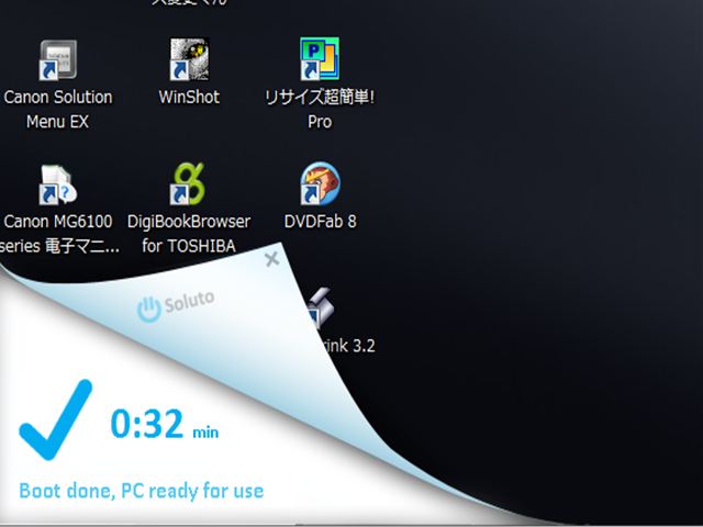週刊ASCIIの「無料ソフトの殿堂」という連載記事があり、6/7号にOSの起動時間を短縮するSolutoというフリーソフトの紹介が出ていましたので早速Dynabookにインストールしてみました。