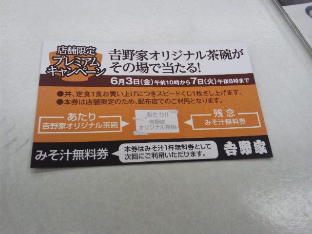 吉牛でお茶碗が当たった!