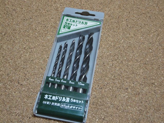 木工用ドリル刃も100均で。こんなものが100円で買えてしまうんですね。