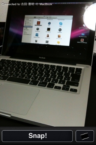 Snap!を押せば写真がPCやMacに送られます。Snap!の右のボタンを押すと