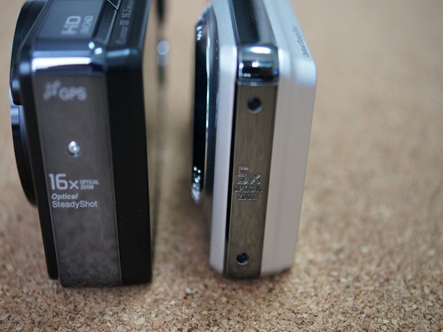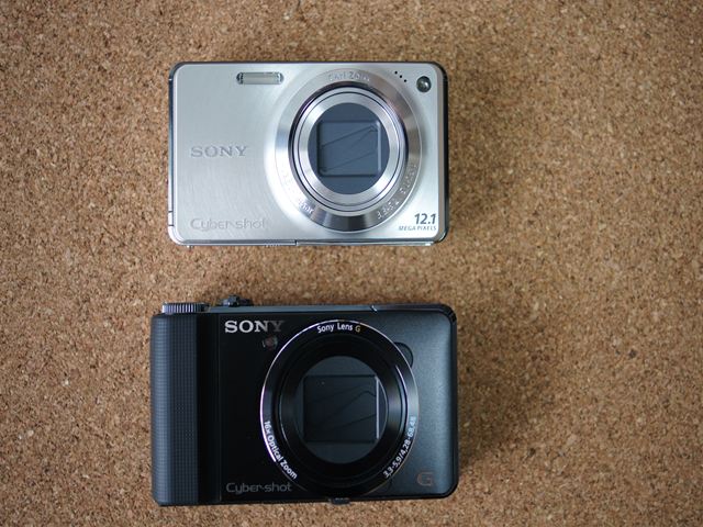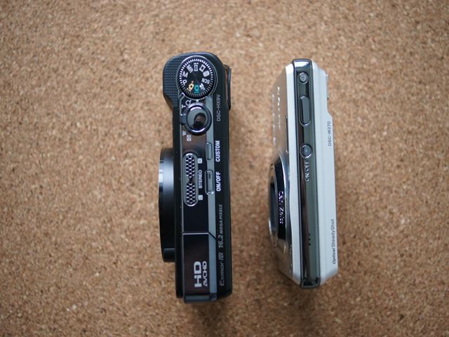 DSC-W270との大きさ比較。もともとW270は数年前の製品ですから、今のコンパクト機と比較するとやや大きめです。HX9Vはそれよりも更に一回り以上大きいですね。まぁ性能が良いから許しましょう。