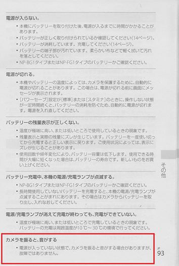 昨日のエントリーでカメラを振るとカタカタ音がするので今度お店に行って展示品を見てこようなんて書きました。それからカメラに添付の説明書を読んでみたら、「故障かな?と思ったら」というページにちゃーんと書いてありました。