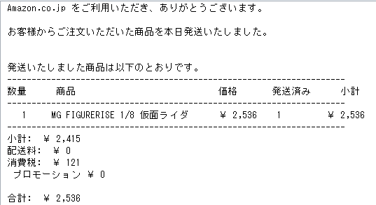 Amazonから商品発送のお知らせ~仮面ライダー1号~