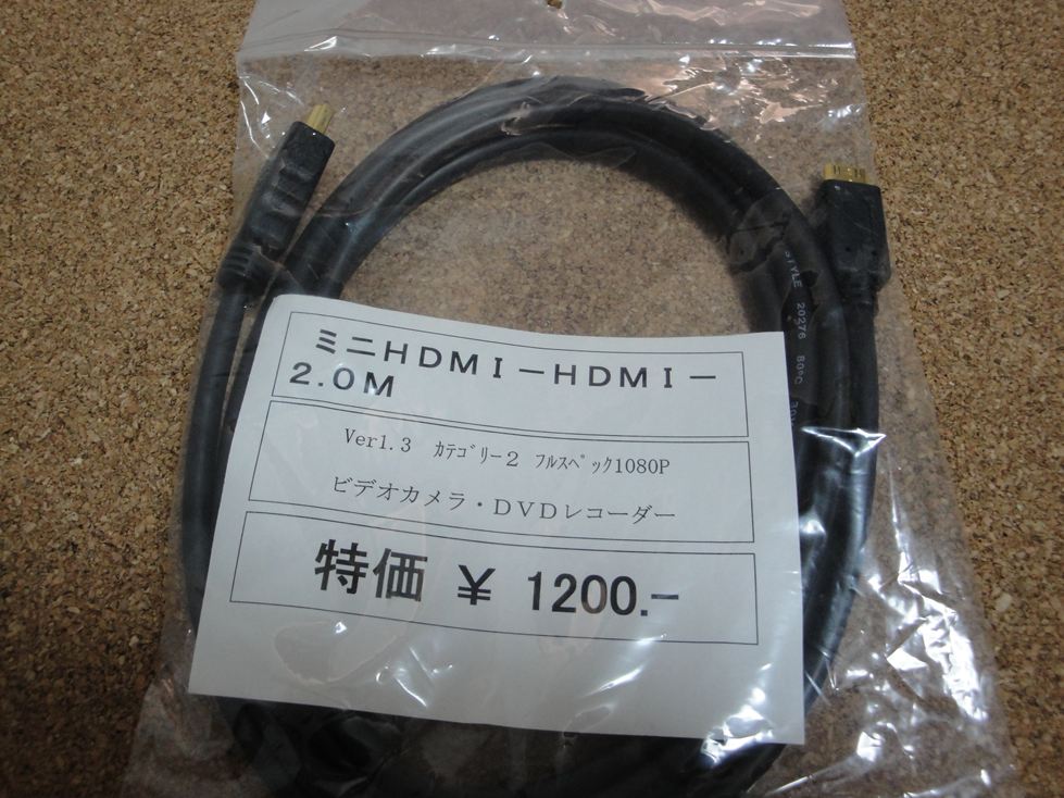 目的のお店に行く途中、秋葉原にあるようなパーツ屋さんをのぞきながらあるいていたらHDMIケーブルが目につきました。そうだDSC-HX9VとTVを接続するためのHDMI-ミニHDMIケーブルを買おう。