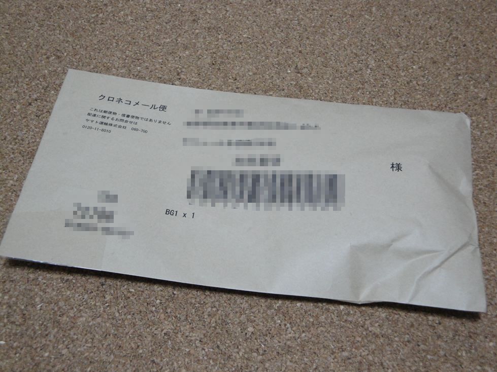 クロネコのメール便で届きました。これなら不在でも郵便受けに入れておいてもらえるので助かります。
