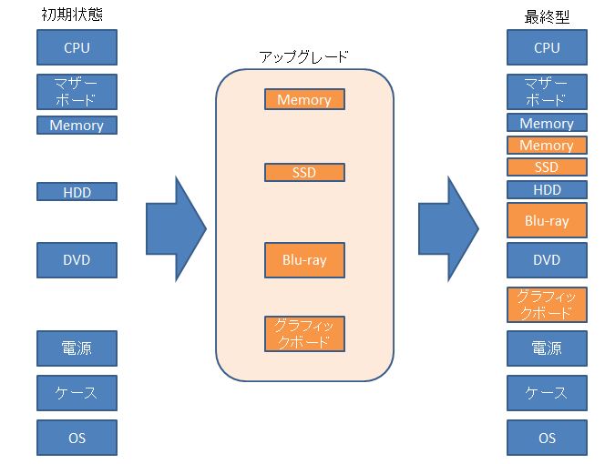 UpGradeの考えを図にしてみました。パーツに無駄が出ないようにしています。