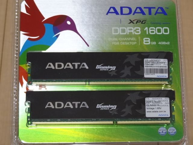 メモリは予定通り A-DATA AX3U1600GC4G9-2G(4GBX2枚) (ドスパラで購入)