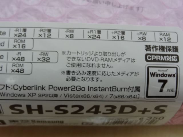 これにする決めてはこの書き込みソフトがWindows7 64bitsに明確に対応していると書かれていたことと、前面のフタの部分にあまり字が書かれていないことです。