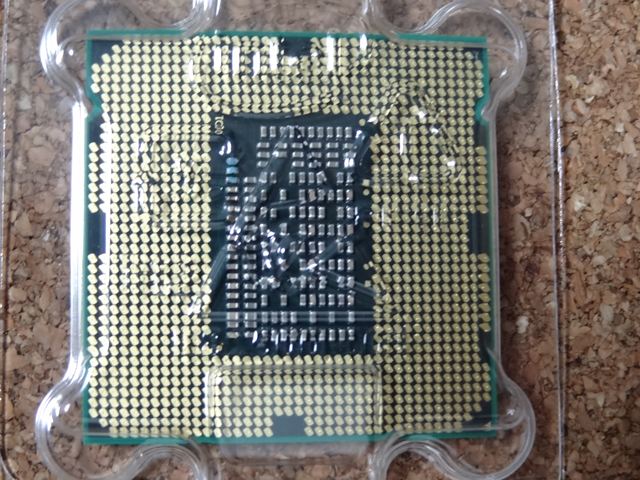 CPUは静電気に弱いので、出来るだけ触らないようにしましょう。これがCPUの表側。