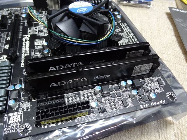 マザーボードをケースに固定する前にCPUとメモリを取り付けます。