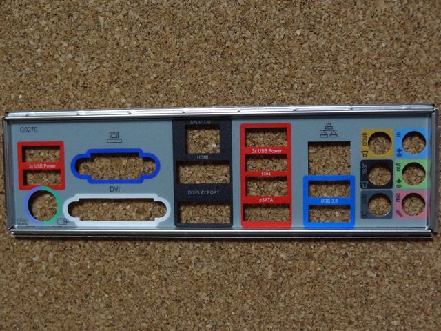 一方PCケースはあらゆるマザーボードに対応しなければならないので、このコネクタ等が出る部分は大きな穴が開けられています。マザーボートにはこの穴にセットするバックパネルというものが必ずセットされていますので、これをケースに取り付けます。