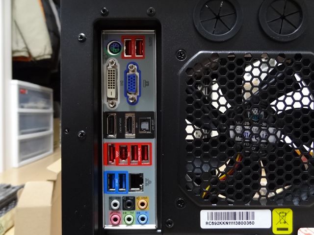 実はこれがなかなか大変でして、どうもケースの穴よりバックパネルの方が少し大きいようで、無理にはめるとバックパネルが大きく膨らんでしまうんです。(バックパネルは非常に薄い金属です)