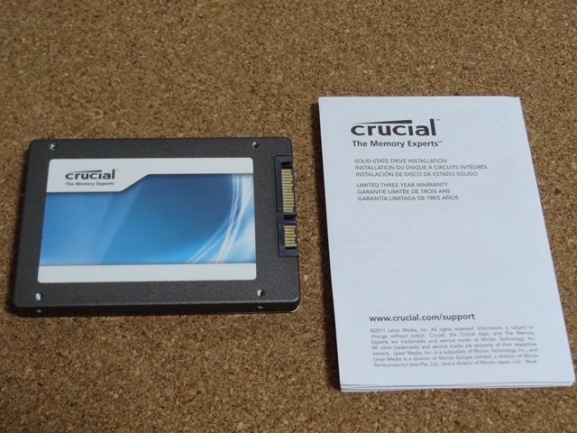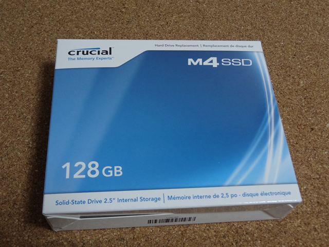 購入したのは現在読み書きのスピードで最速の部類に入るCRUCIALのM4SSDで型番はCT128M4SSD2という128GBモデルのSSD(Solid State Drive)です。