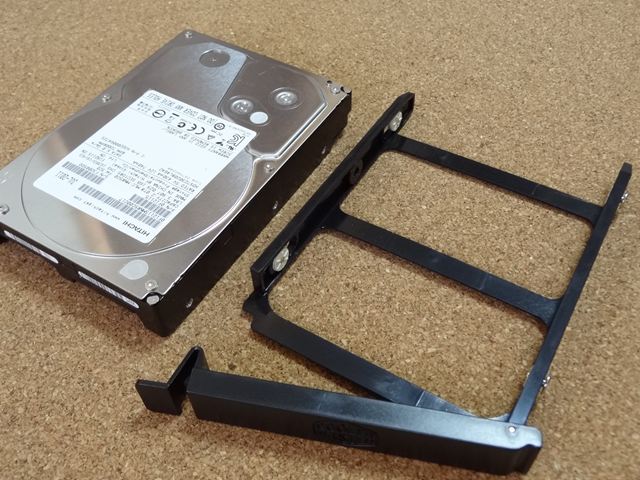 ケースの3.5"ドライブベイのアダプタにこのHDDを取り付けます。